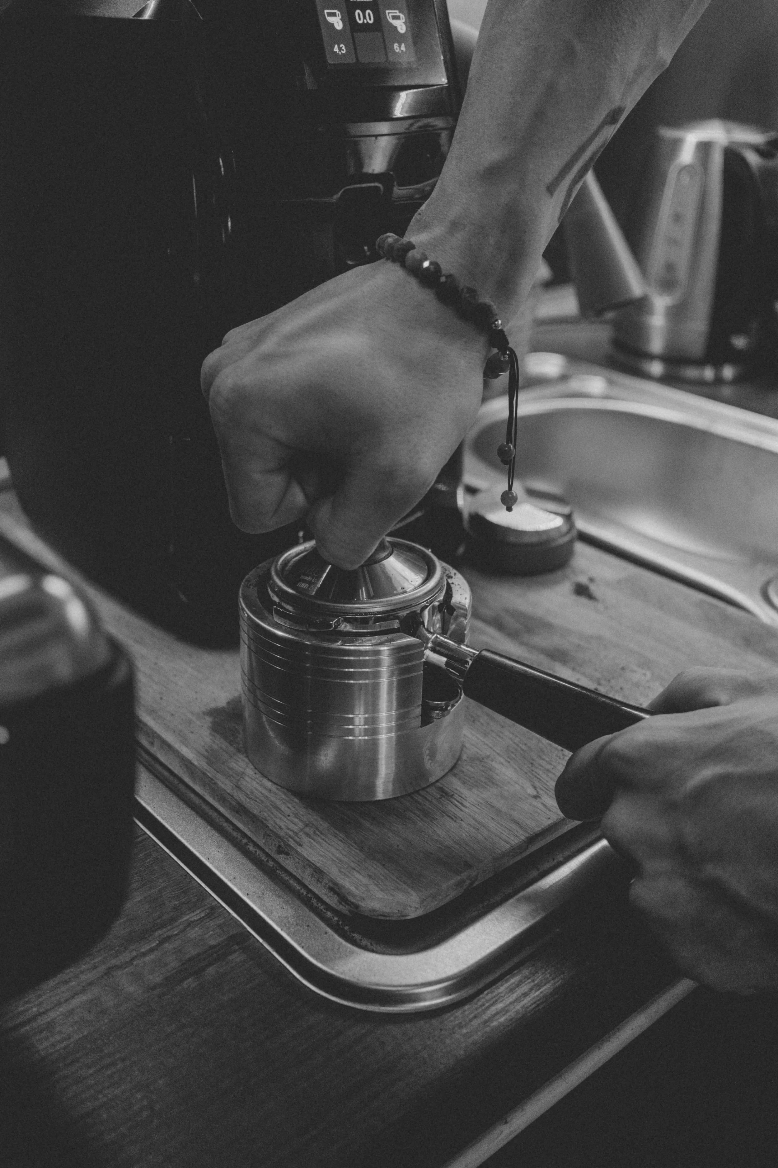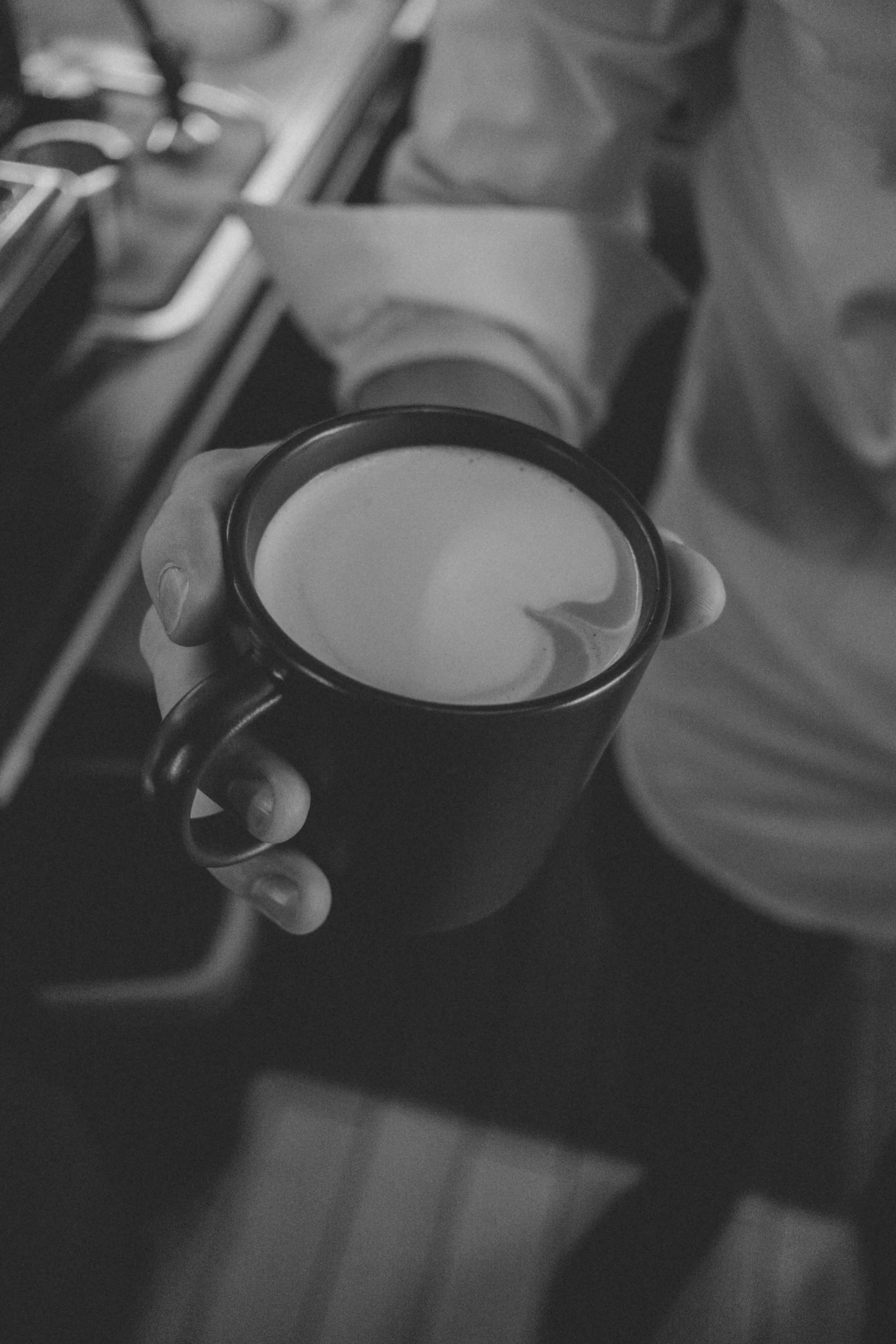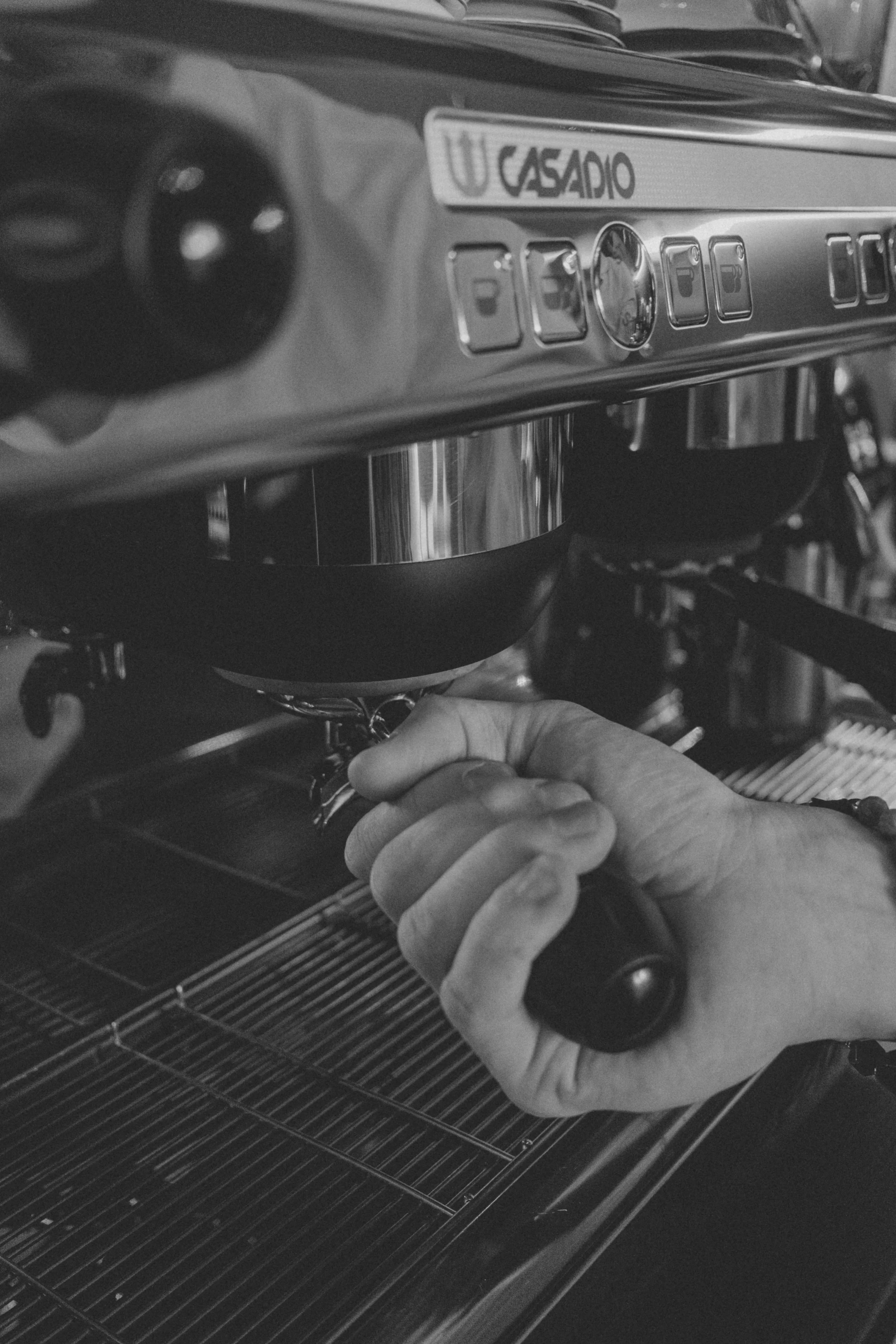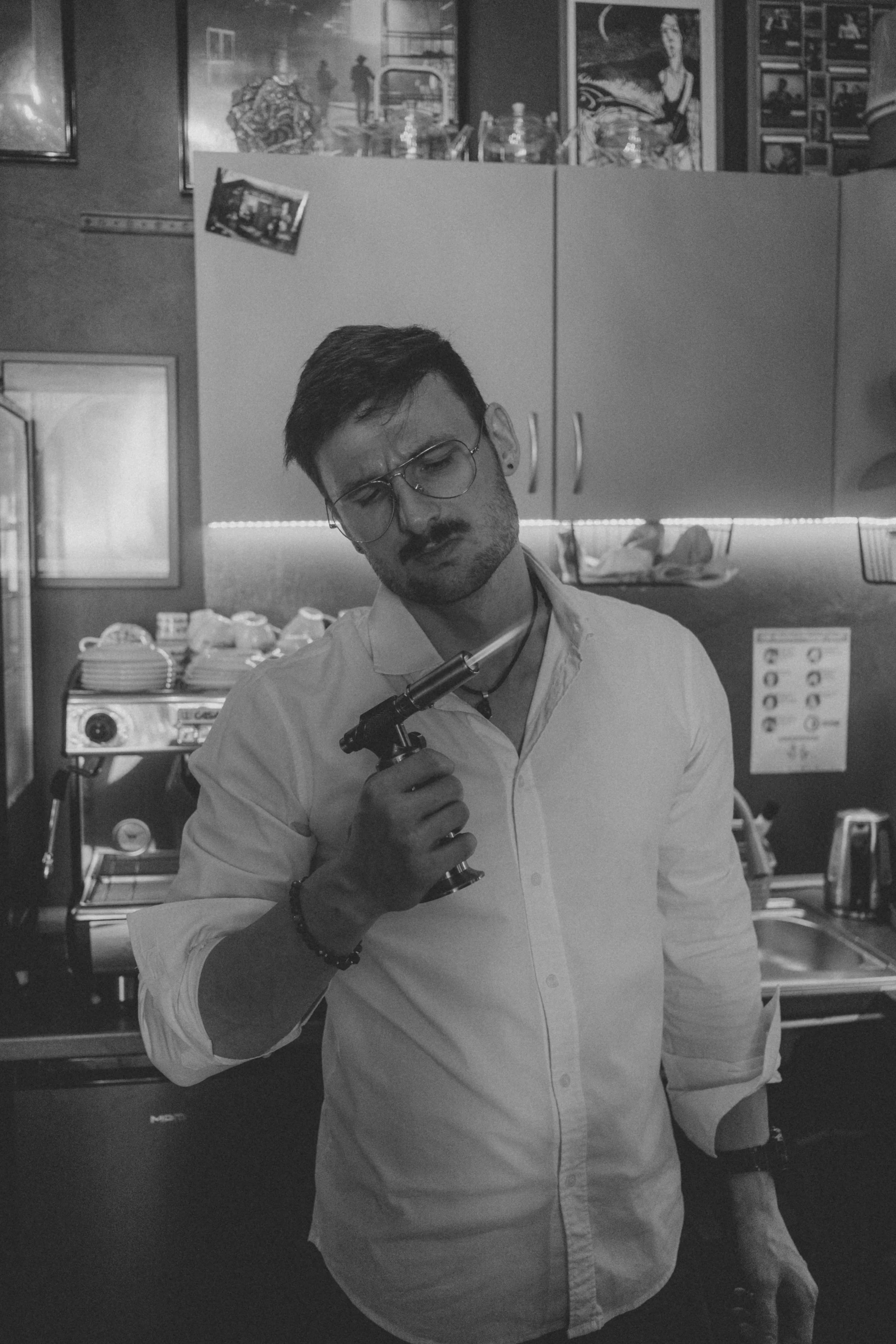 Kilka minut poźniej. Przy barze. Para unosi się filmowo. W tle widać, jak Marek operuje ekspresem. Cappuccino. Rozmawiamy o ...